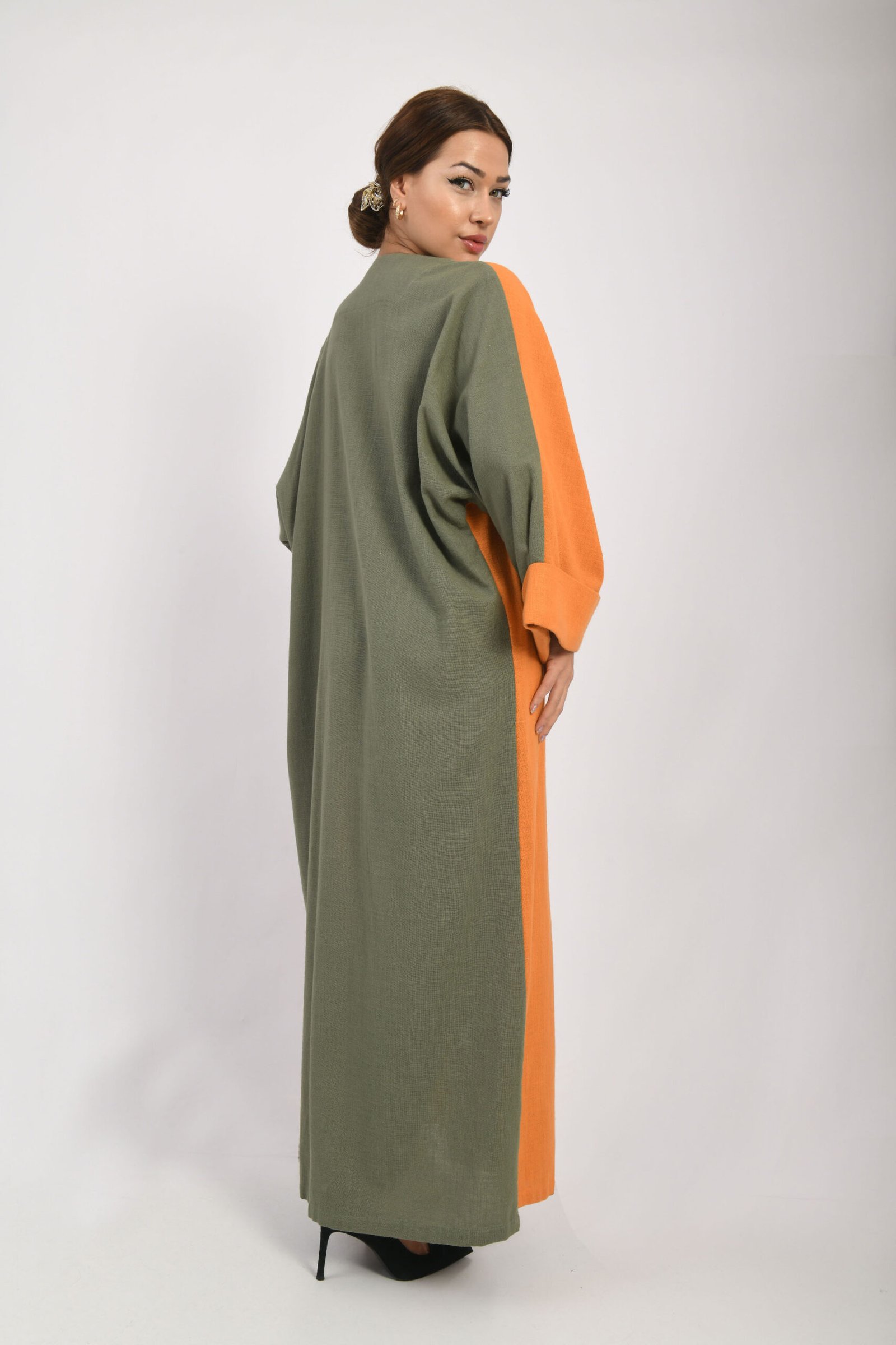 Eğer ölçüleriniz iki beden arasında kalıyorsa, abayanın daha rahat ve dökümlü durması için bir beden büyük olanı tercih etmenizi öneririz.
